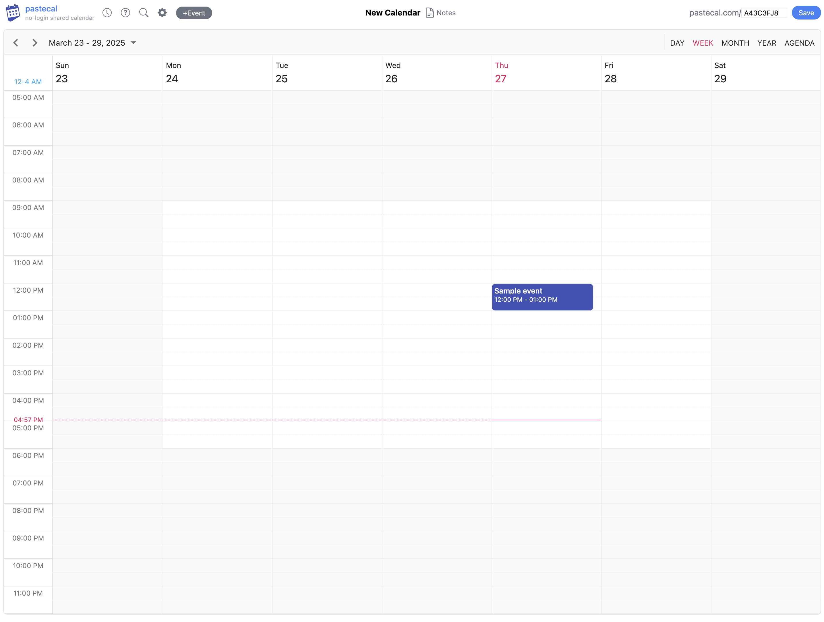 pastecal.com/?d={YYYYMMDD|YYMMDD|YY-MM-DD...}&v={day,week,month,year}. Example: pastecal.com/?d=2022-04-01&v=month
