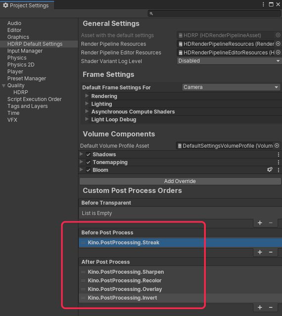 Kino is a collection of custom post-processing effects for Unity's High Definition Render Pipeline (HDRP).