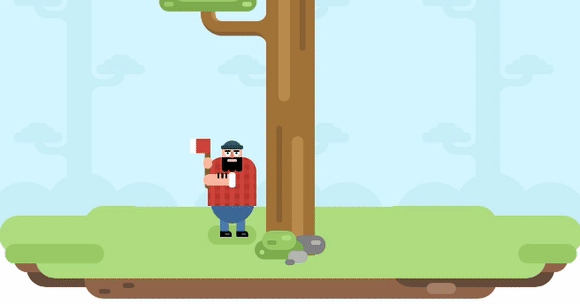 - Continuar clickando no mesmo lado enquanto não houver um galho logo acima do lenhador;