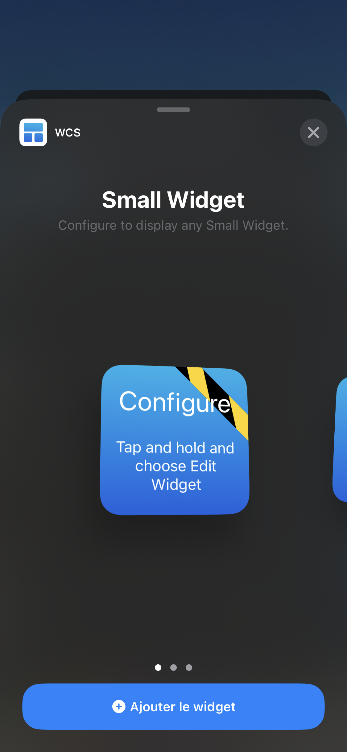 This should open WCS (the app you installed in step 1) and present you with the available sizes of widget.
