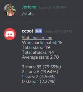 There are lots of other features including member stats, war summaries, and configuration options. Type "/help" to get a full list of available commands.