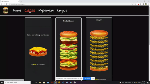 Social Burger is a site in which users interact with each other by sharing their own customized burger. On social burger, our main goal is to connect with people around the globe with creativity and innovation.