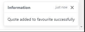 Toast notification of the status of added quotes to favourite reflected at the bottom right of the software.
