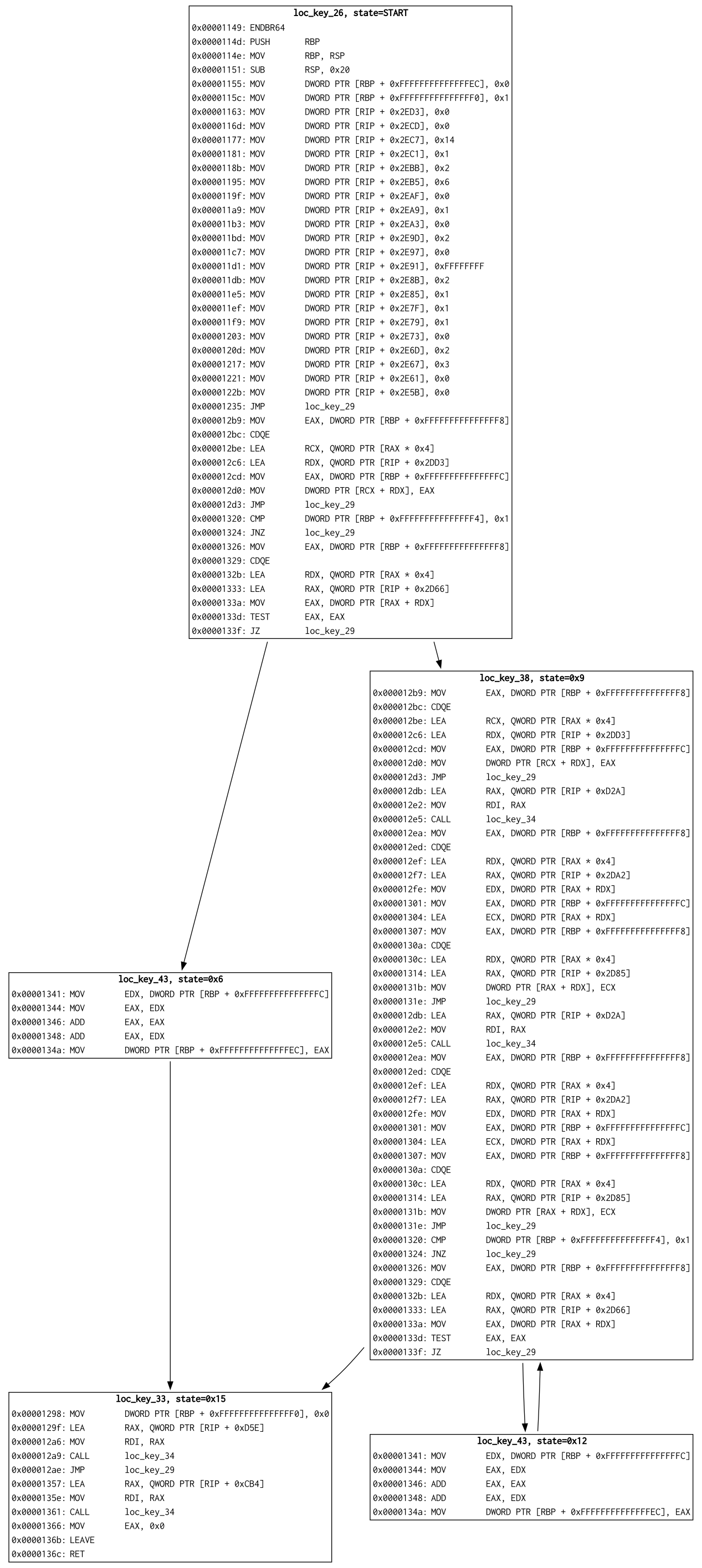 This project demonstrates the use of abstract interpretation for binary analysis, specifically focusing on tracking dispatch state transitions in x86_64 binaries obfuscated by control flow flattening (CFF). It serves as both an educational resource and a proof-of-concept implementation.