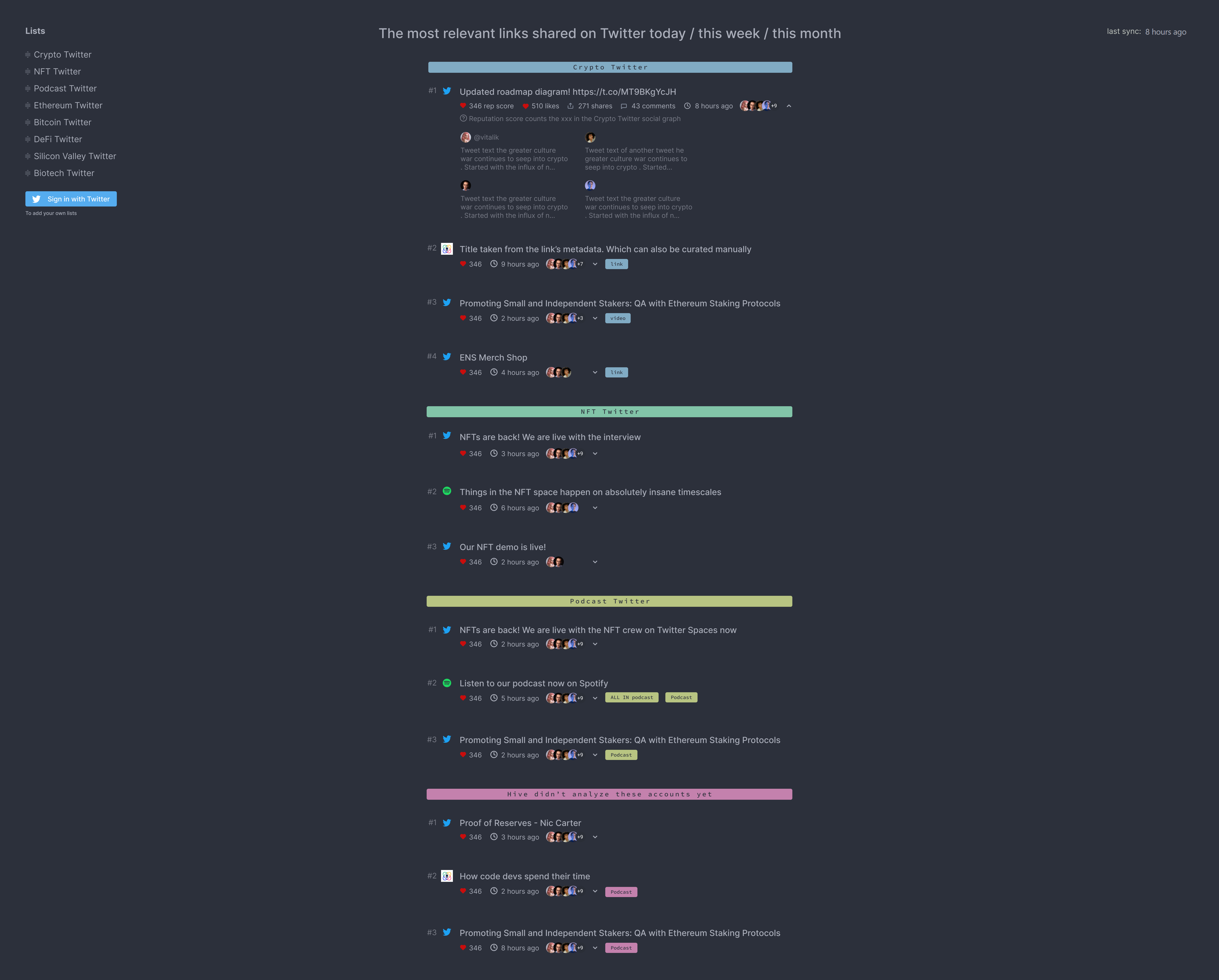 As advanced Crypto Twitter user, I want the top 10 daily tweets to be based on accounts I follow.