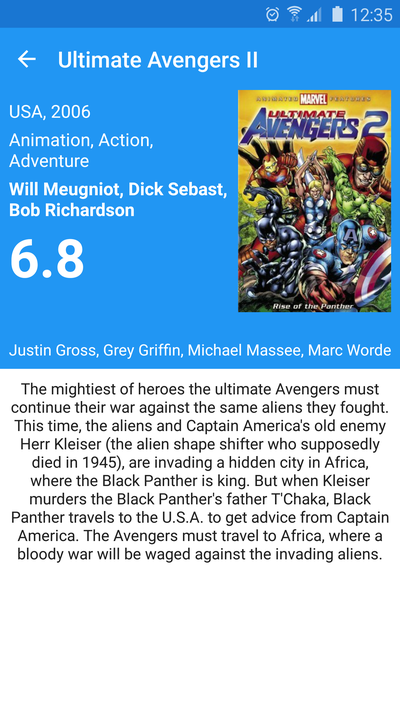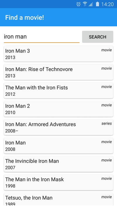 The application allows to find a movie and display its details. It uses OMDb API (http://www.omdbapi.com/).