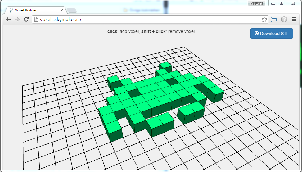 voxel-builder Fork from threejs Voxel Painter example Build 3D voxels with a click and export for 3D-print. Uses CSG library for cube merge. Test live demo at http://voxels.skymaker.se