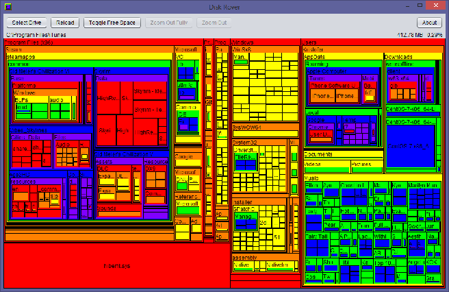 Visually see which folders and files are taking up the most space in your filesystem. Written in Java for portability to multiple operating systems. Tested on Windows 7, Windows 8.1, Windows 10, CentOS, and macOS Sierra.