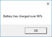 Show a pop up alert when your laptop battery reached 96% to remind you to unplug the charger, and remind you to plug in charger when battery is getting low (In this case is 18%).