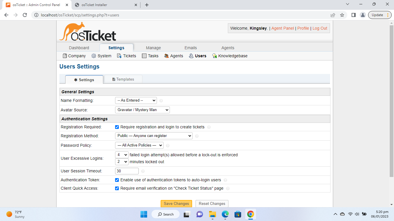 - Registration Required: Require registration and login to create tickets