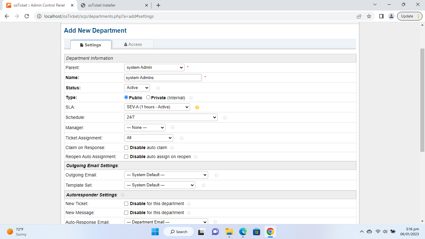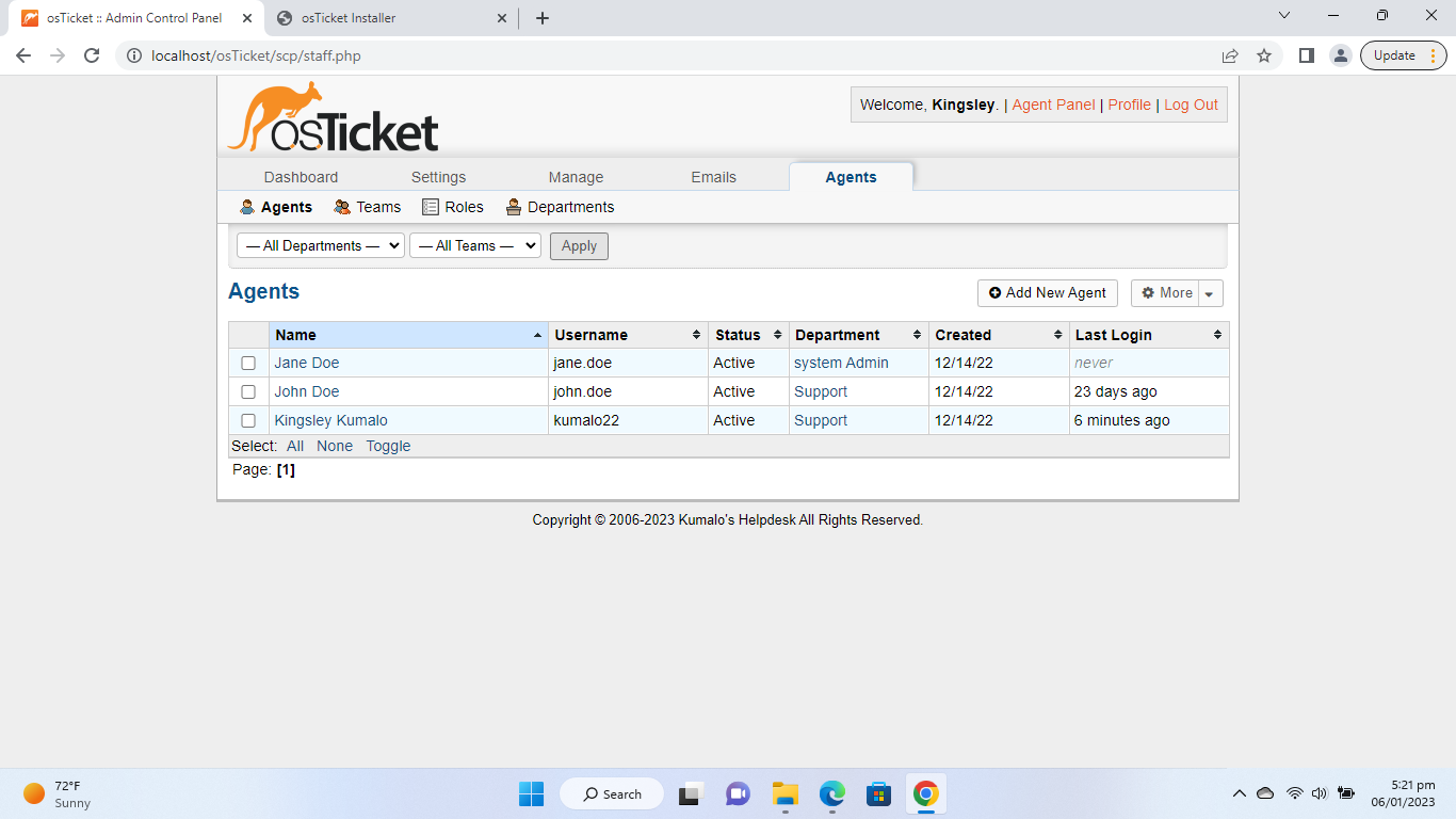 - Admin Panel -> Agents -> Departments