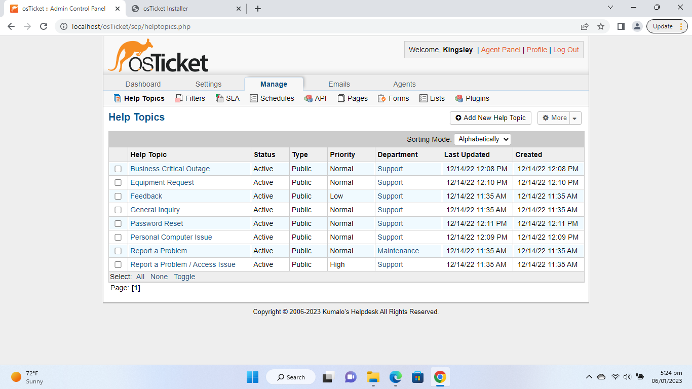 i. Admin Panel -> Manage -> Help Topics