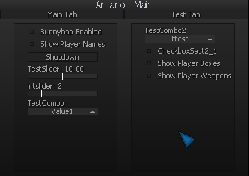 - D3D9 menu with automatically adjusted positions of tabs, sections and selectables