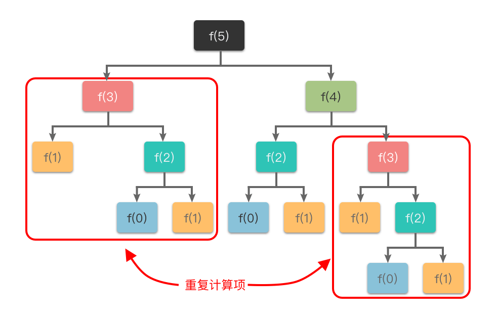 在使用递归算法时,还可能会出现重复运算的问题。
