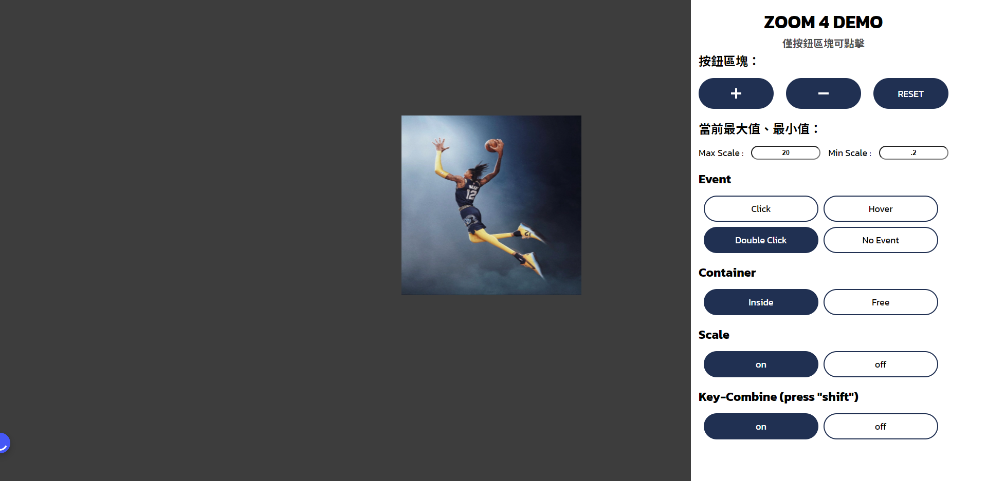 zoom-element(scale="on" key-combine="on" container="inside" event="dblclick" min-scale=".2" max-scale="20" button="has-button")