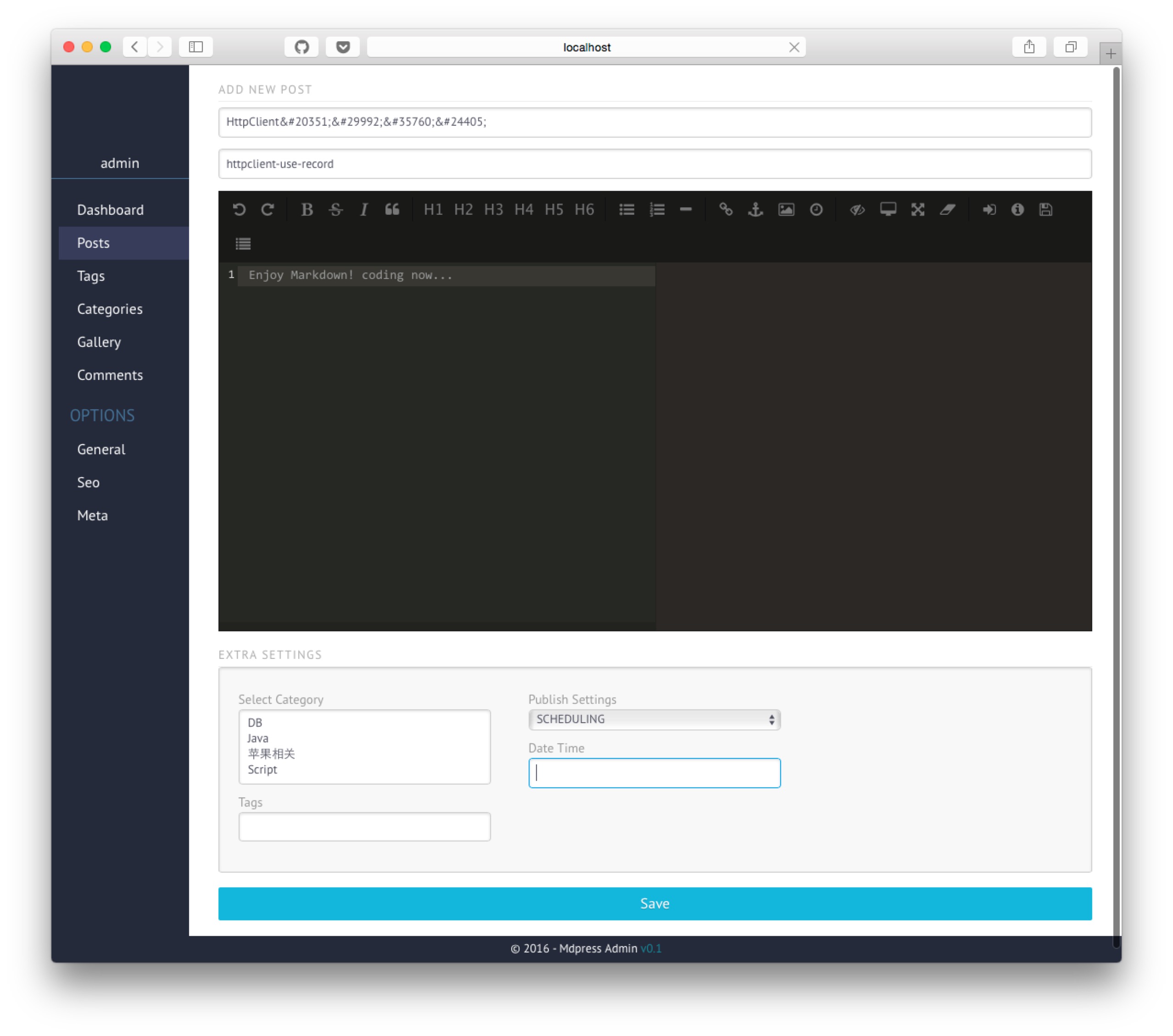 Mdpress can fullfill my requirements, and it's blog editor base on Editor.md.