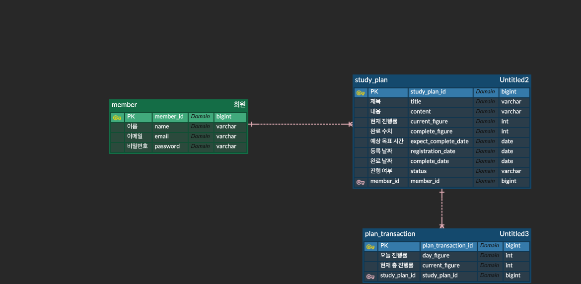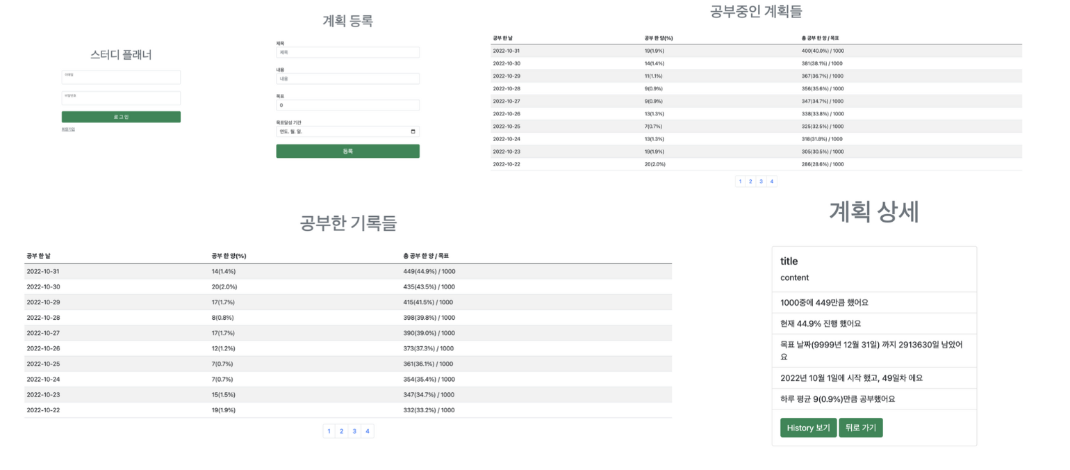 사용자는 계획을 등록한다. 계획을 등록할때에는 제목, 내용, 목표량(책 페이지, 강의 시간, 챕터 등), 목표날짜등을 입력할 수 있다.