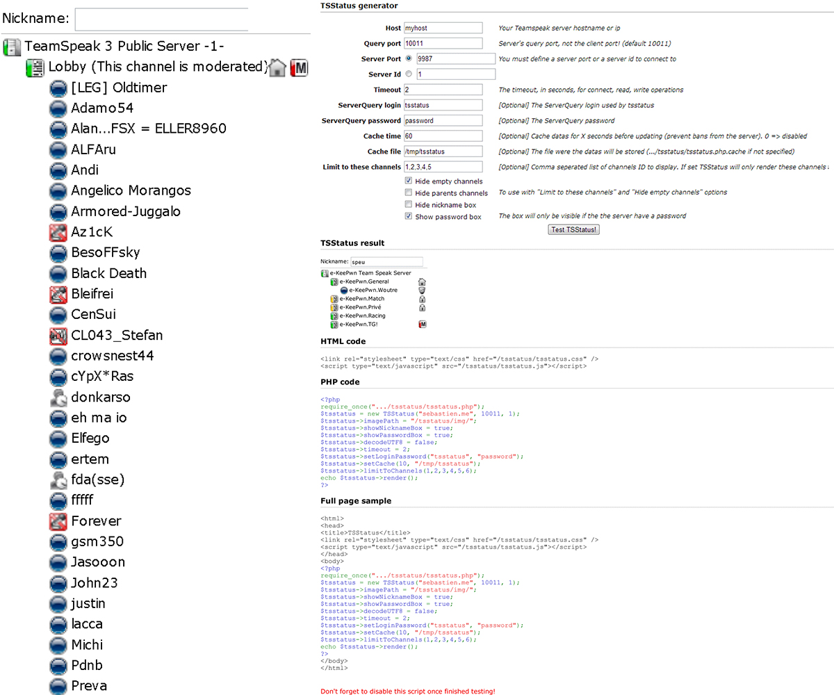 - Now you can test and customize TS3SSV. The generator will output/update the codes needed to display your status page