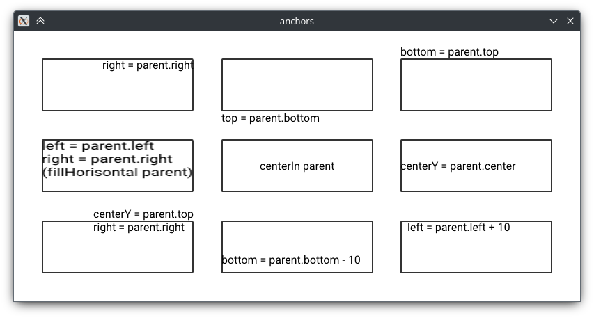 bottom = parent.bottom - 10 # -i always means up/left and +i means down/right, even if theese all are bottom anchors