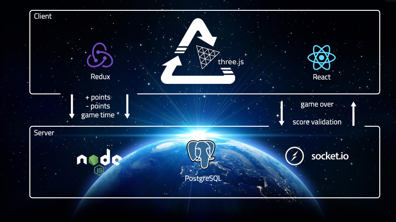 Light Speed is a space flight simulation where points are accumulated as players race through rings that are dynamically positioned while avoiding space debris. Light Speed is built on an architecture of Three.js, React, Redux, Express, & PostgreSQL. We also built out custom Blender models and enjoyed exploring the possibilities of zero gravity flight within the browser.