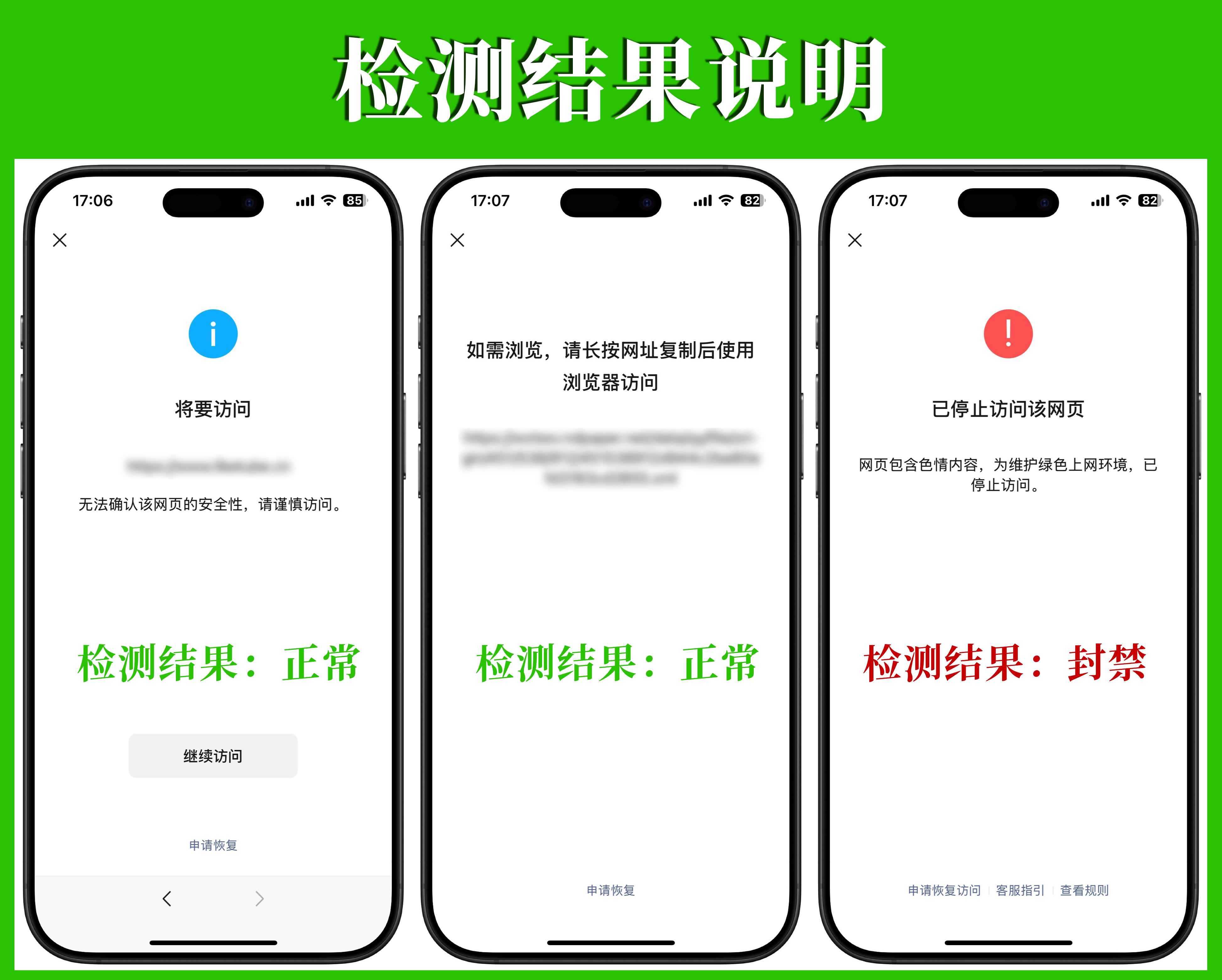 一个用于检测你的域名是否被微信封禁或拦截的小工具。通过调用微信官方接口,免费、无限次数检测。