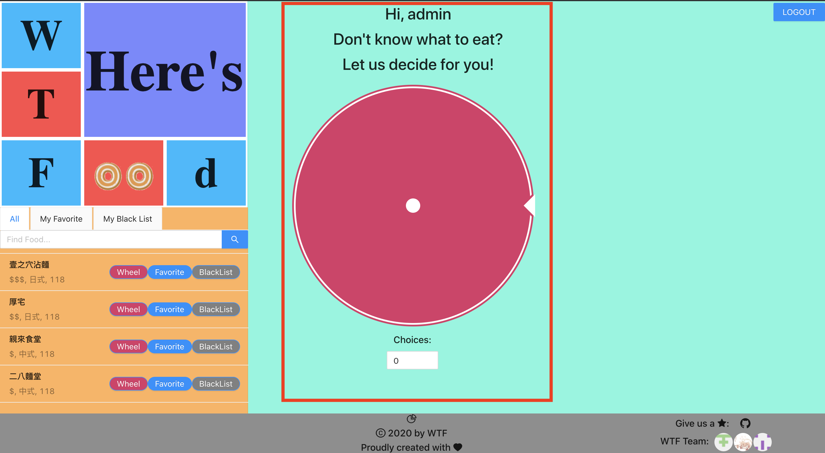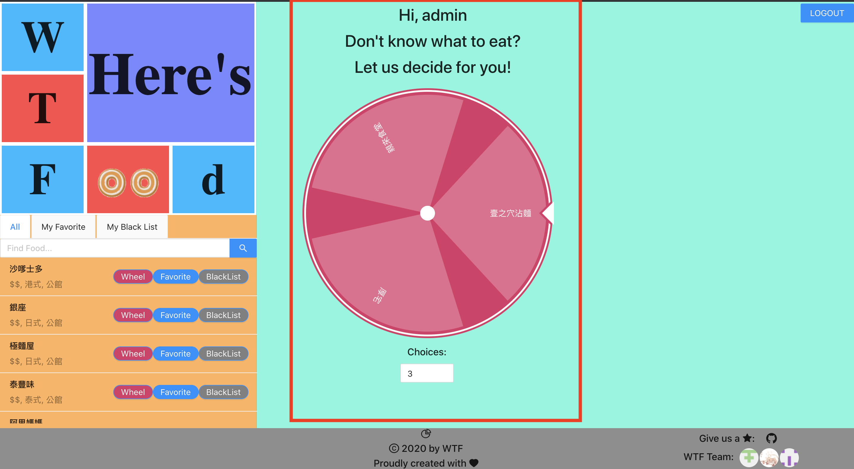 - 題目名稱: WTF - Where's The Food? (Wheel of Restaurants)