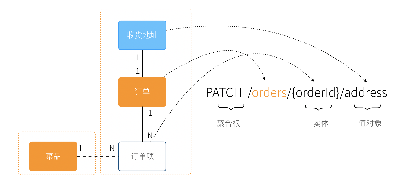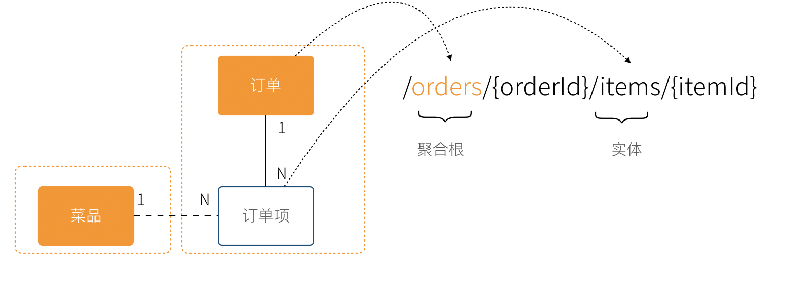 资源 URL 设计来源于 DDD 领域建模就非常简单了,聚合根作为根 URL,实体作为二级 URI 设计。聚合根之间应该彻底没有任何联系,实体和聚合根之间的责任应该明确。