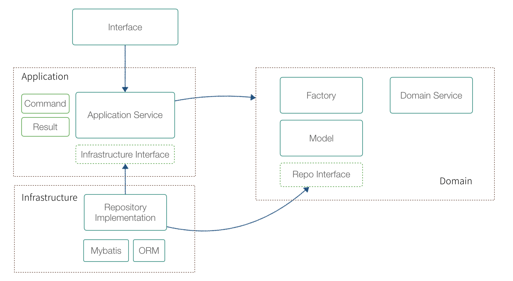 - 尽可能和领域名词保持一致,例如聚合根、实体、事件等