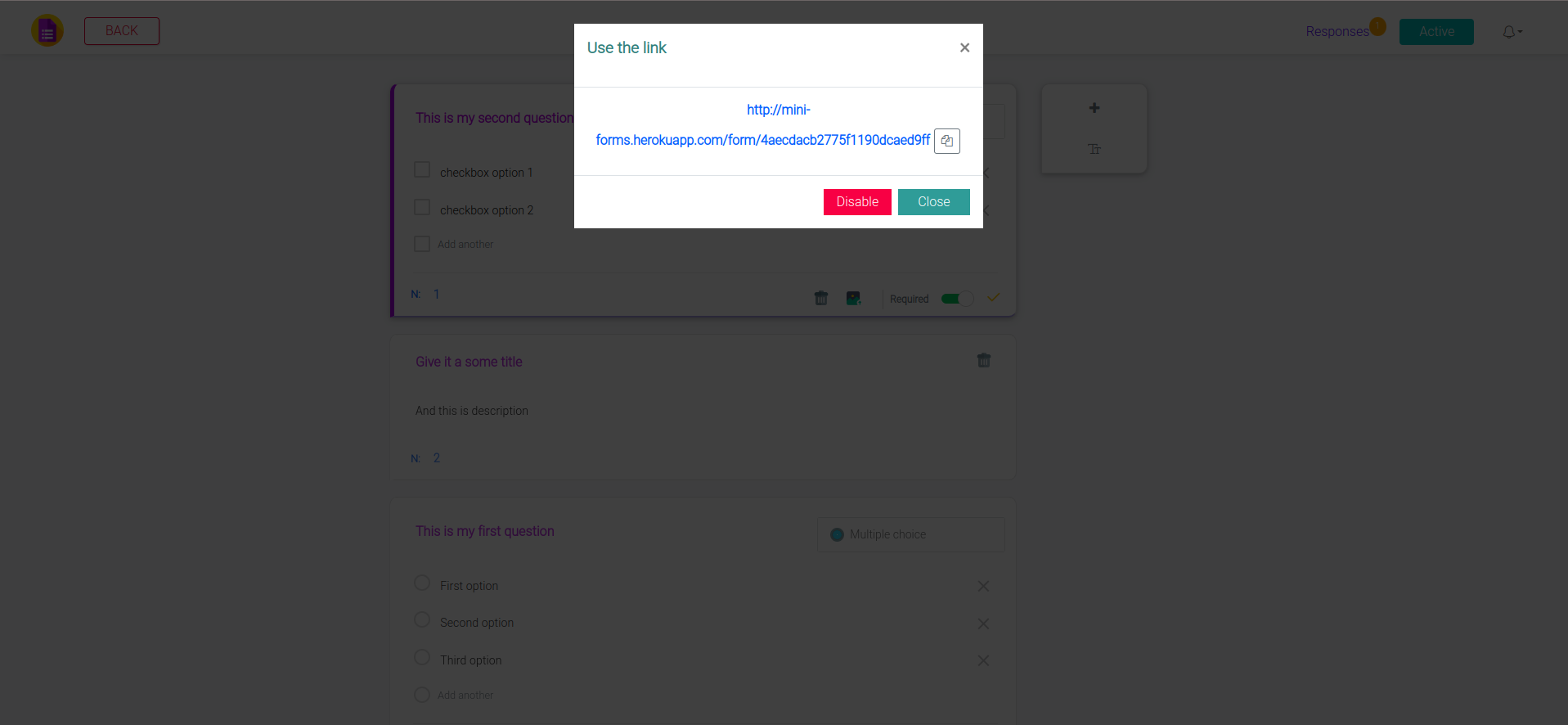 Mini Google forms clone - DEMO version