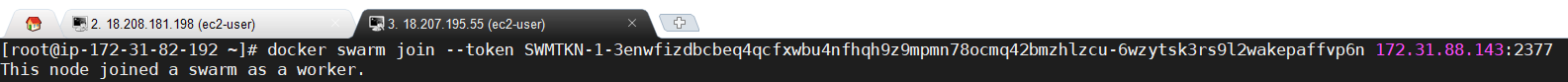docker-swarm Pre-Requisites Minimum Two EC2-Instance Install Docker Initilize Docker Swarm Master using below command docker swarm init Open port: 2377 in security group of master server Provide tocken number in Slave server docker swarm join --token SWMTKN-1-3enwfizdbcbeq4qcfxwbu4nfhqh9z9mpmn78ocmq42bmzhlzcu-6wzytsk3rs9l2wakepaffvp6n 172.31.88.143:2377 Check nodes in master docker node ls