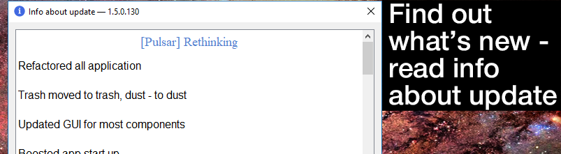 Find out, what's new in new update. Use info icon on Updater to check it out.
