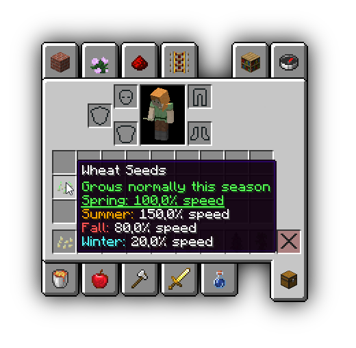 Each individual crop will have a pre-configured growth speed for one of the four seasons, this is controlled by a datapack and can be changed by the user if they want.