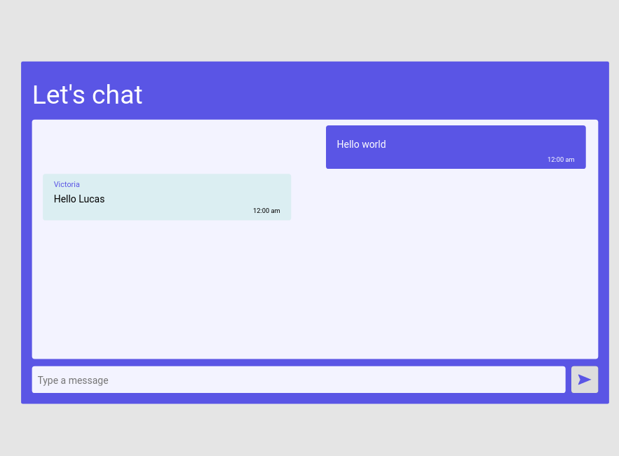 Chat Web Simple chat using socket.io and ReactJs. Preview Installation Use the package manager npm to install de dependencies: npm install npm run dev Or the yarn: yarn yarn dev Project Technologies ReactJS, Socket.io. Author Lucas Barros - Full-stack Developer