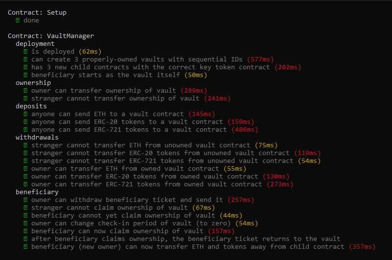 - One vault key that allows withdrawal from the vault. This key is itself an ERC-721 token. To transfer ownership of the vault, send someone else the vault key.