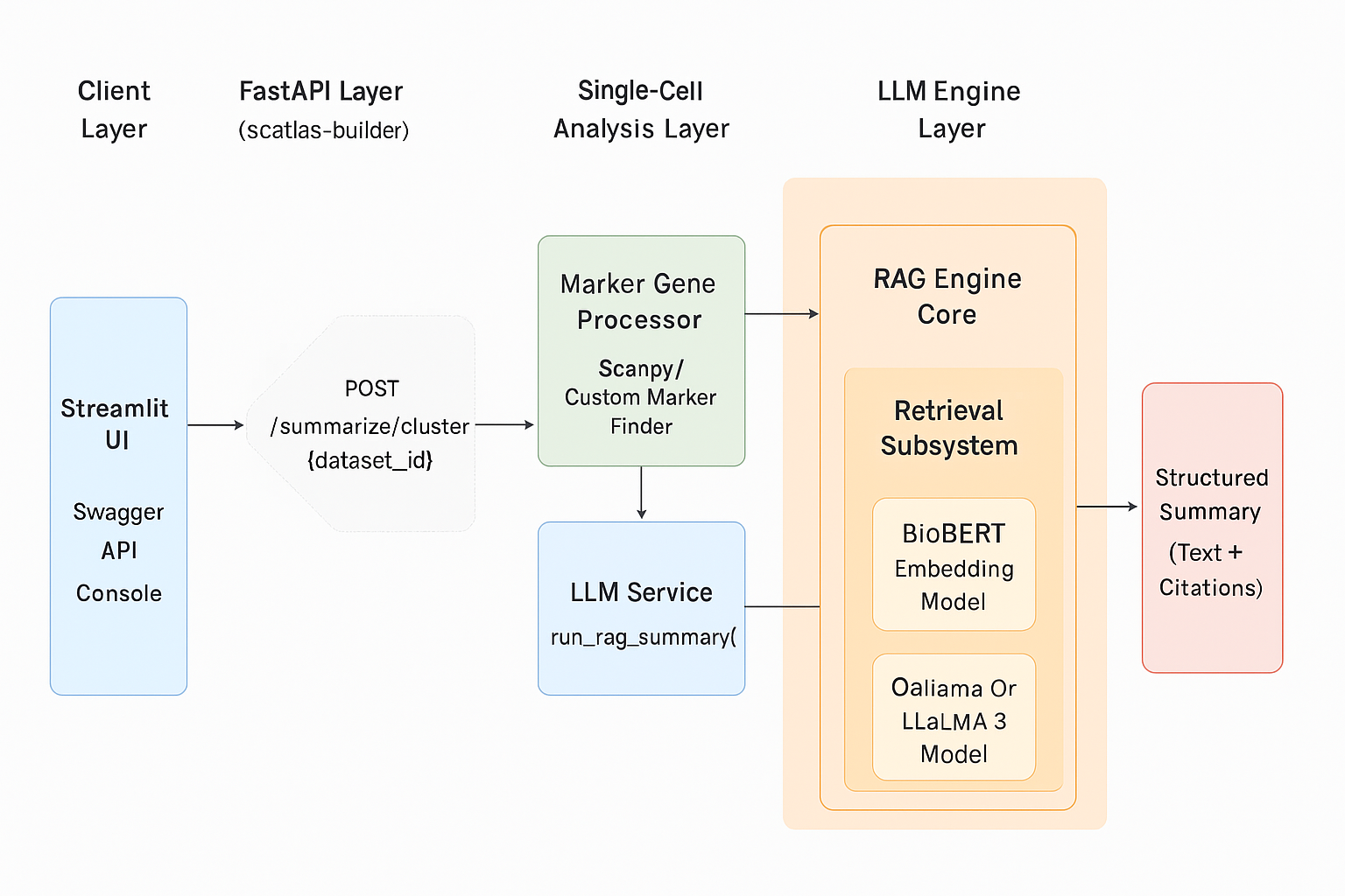 We maintain two separate projects: scatlas-builder, the core single-cell analysis platform, and rag-gene-discovery-assistant (ragbio), the RAG-LLM–based biological knowledge extraction tool.