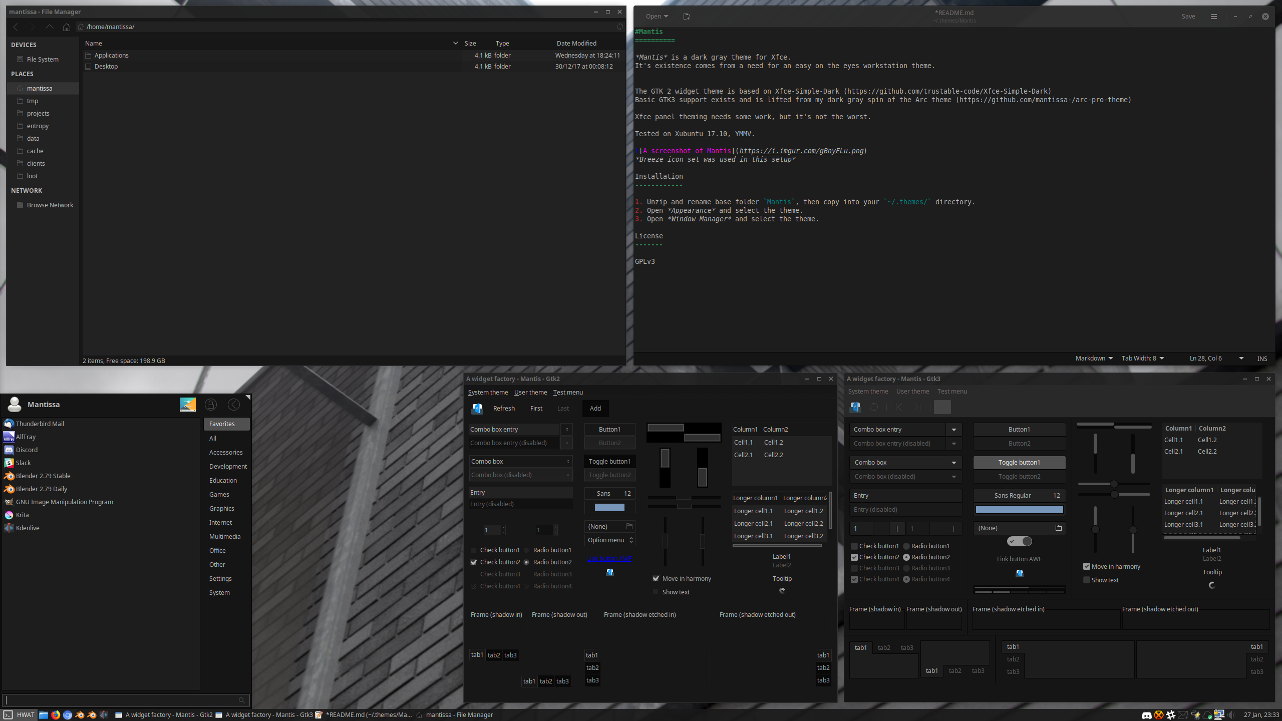 Mantis is a dark gray theme with 3 variants for Xfce.