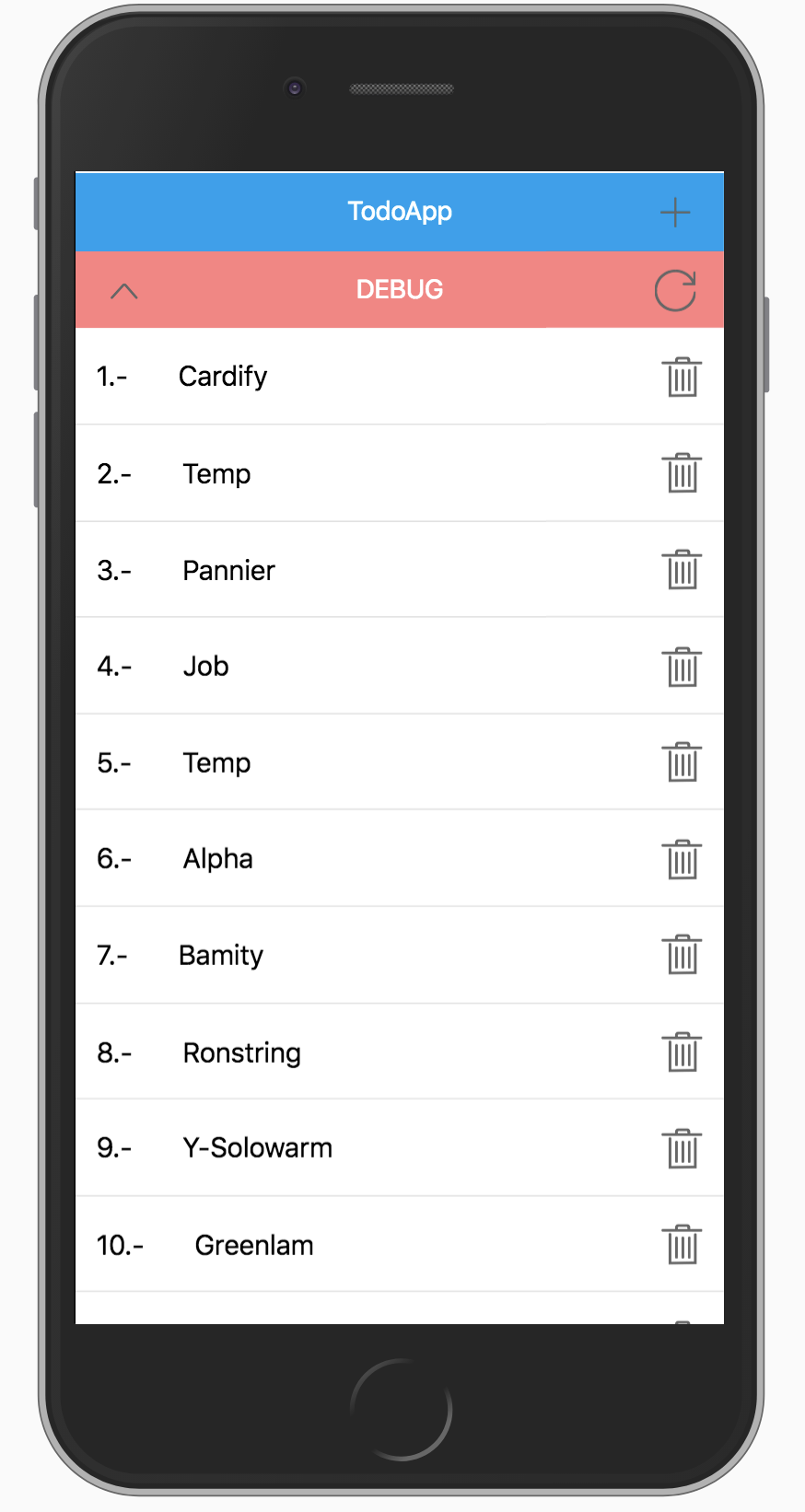 The application can manage simple text tasks. You can add, delete, update the task list and load a JSON with a set of tasks.
