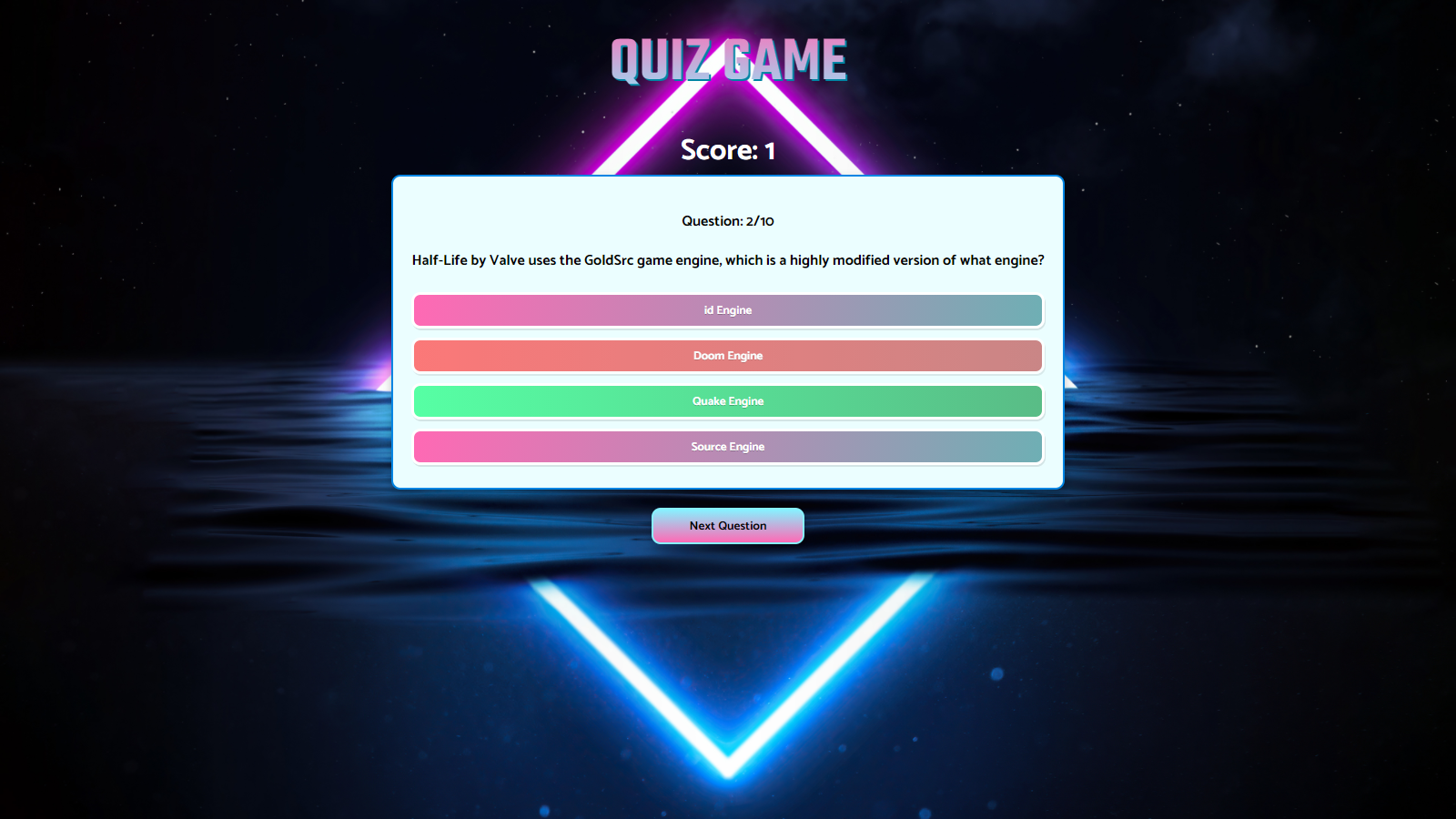 Quiz Game is a question and answer application, the game has 10 questions of general themes and the user's score is shown in real time.
