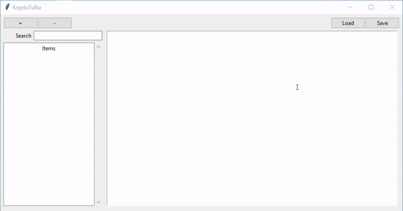 Items are manipulated as title and content pairs, but are never saved to disk in readable form. Decoding them requires providing a user-defined password. The encryption scheme follows: