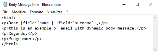 It contains the body message of email. It can be written in HTML.