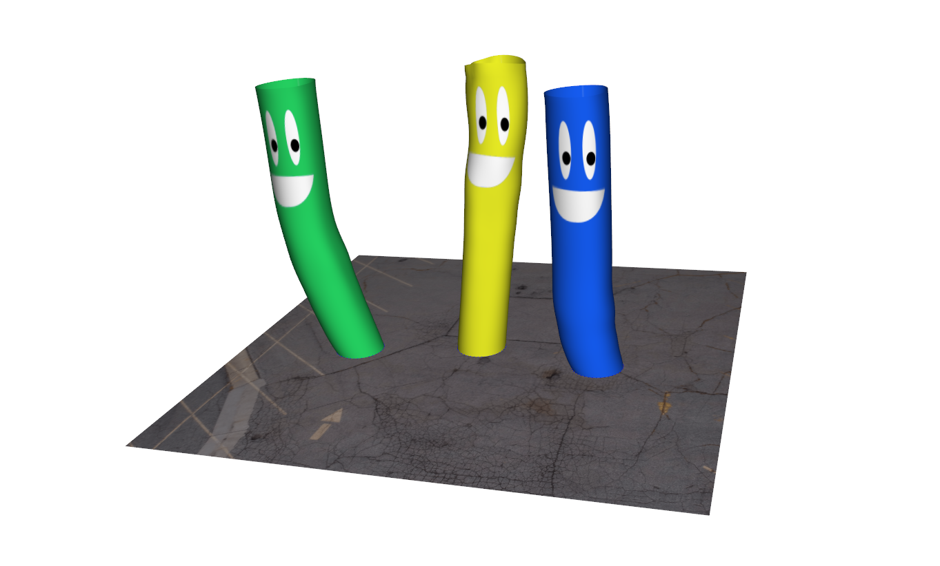 A skydancer is a publicitary balloon with a humanoid shape, which is blown up and performs chaotic movements in the sky. This seemed like a nice twist to the cloth sim problem, so we tried simulating this ourselves!