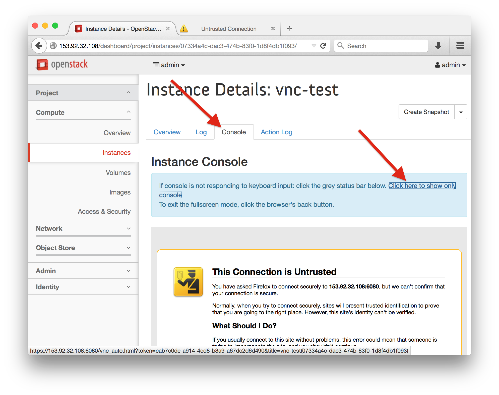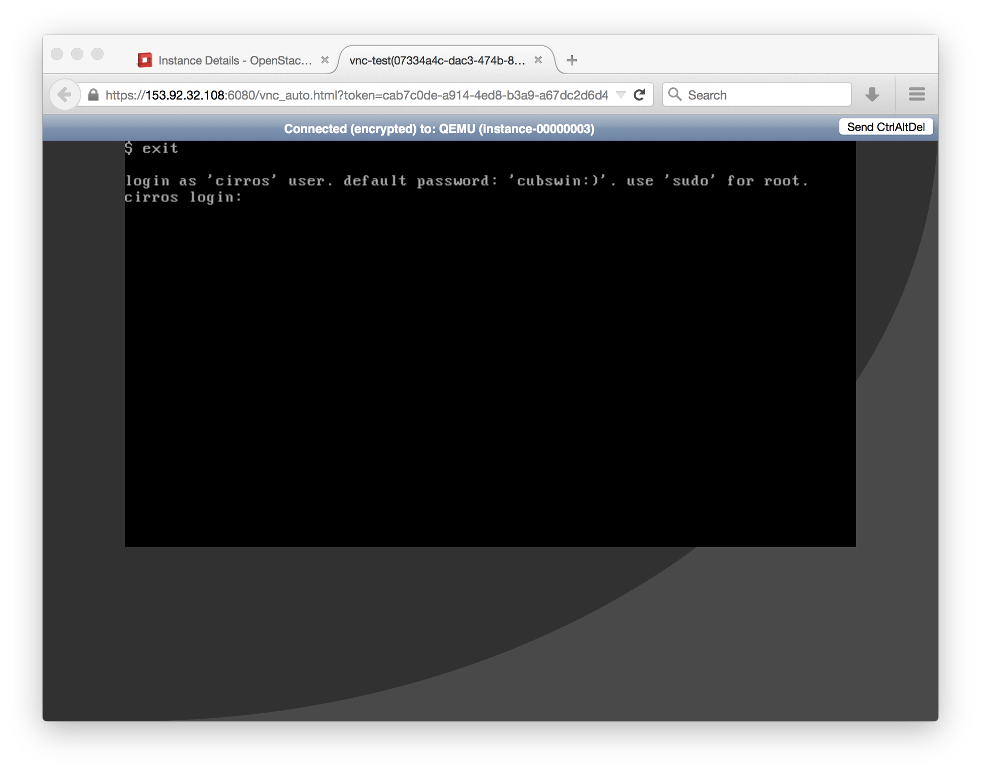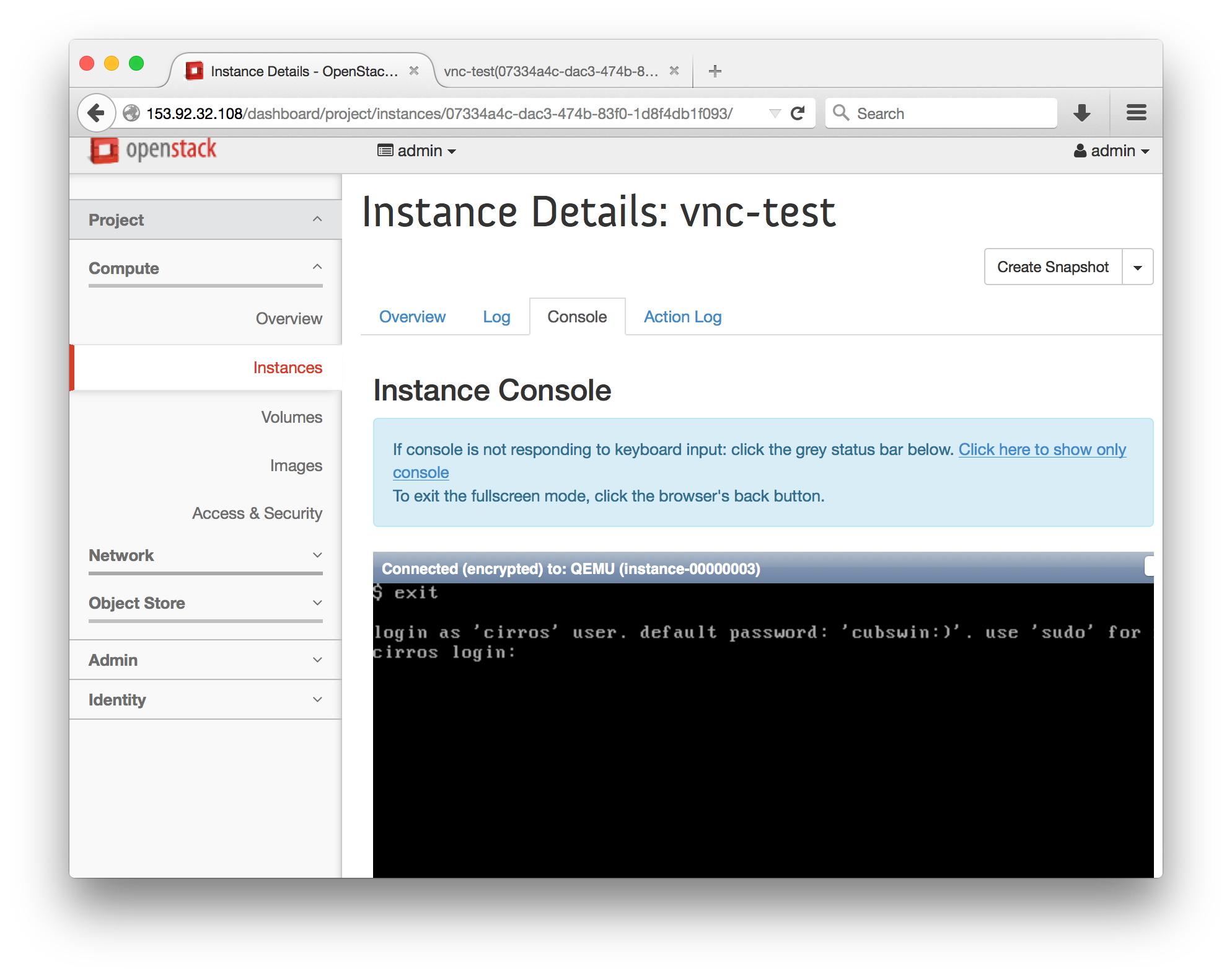 Let's go use the vnc service! Open the OpenStack Horizon interface (log in as admin / alta3)