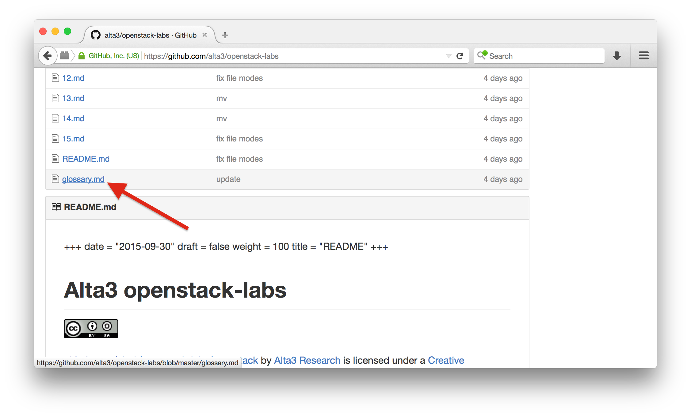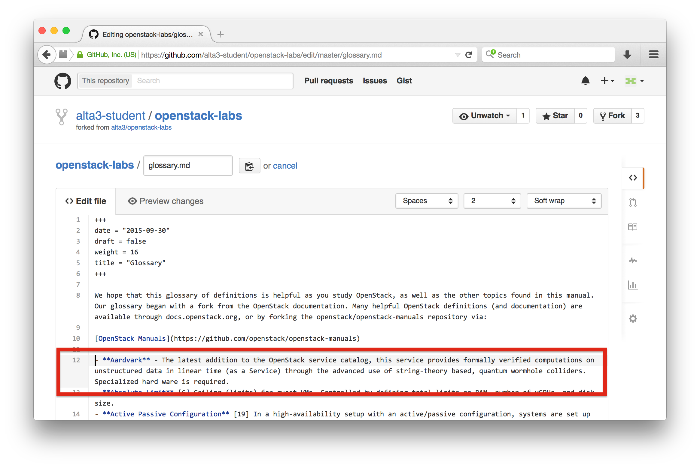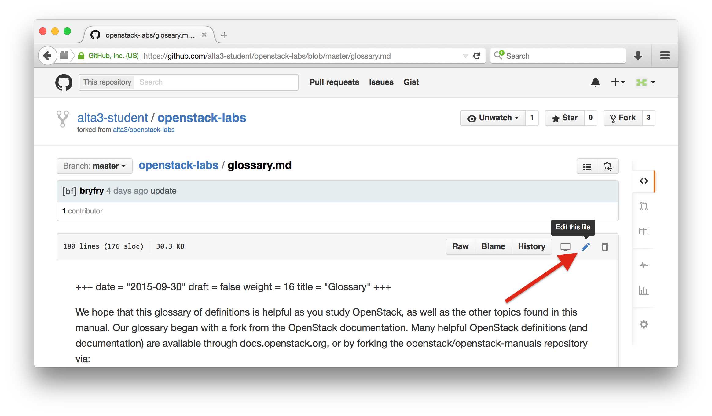 Navigate to (click on) a file you would like to edit. The this example will add a new glossary term to our glossary.