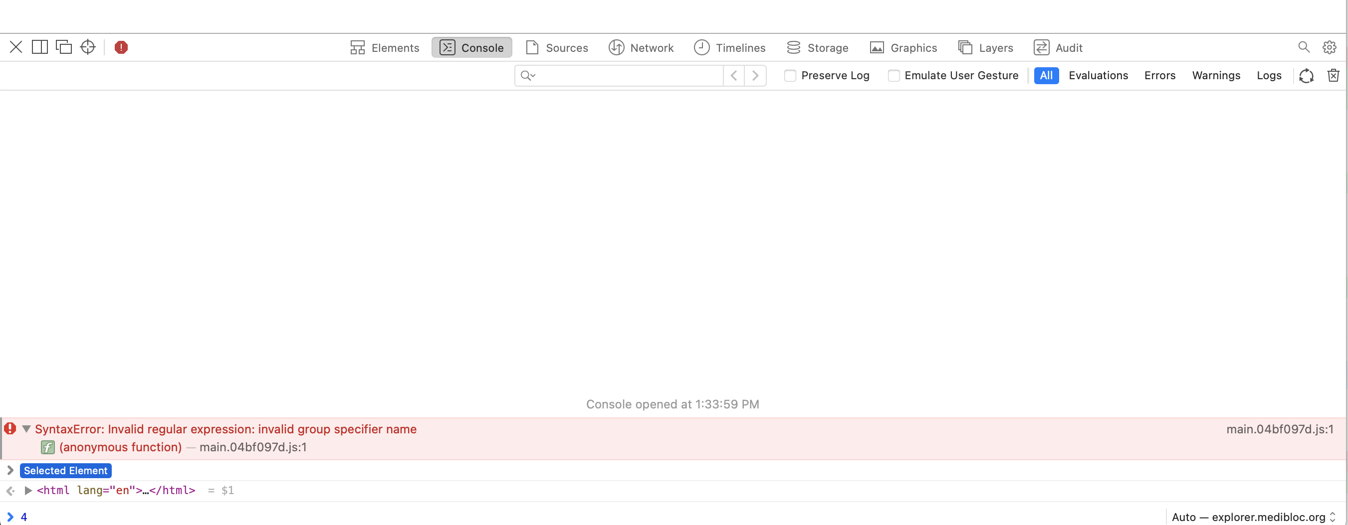 Everything works well on Chrome, but the following error occurs on Safari.