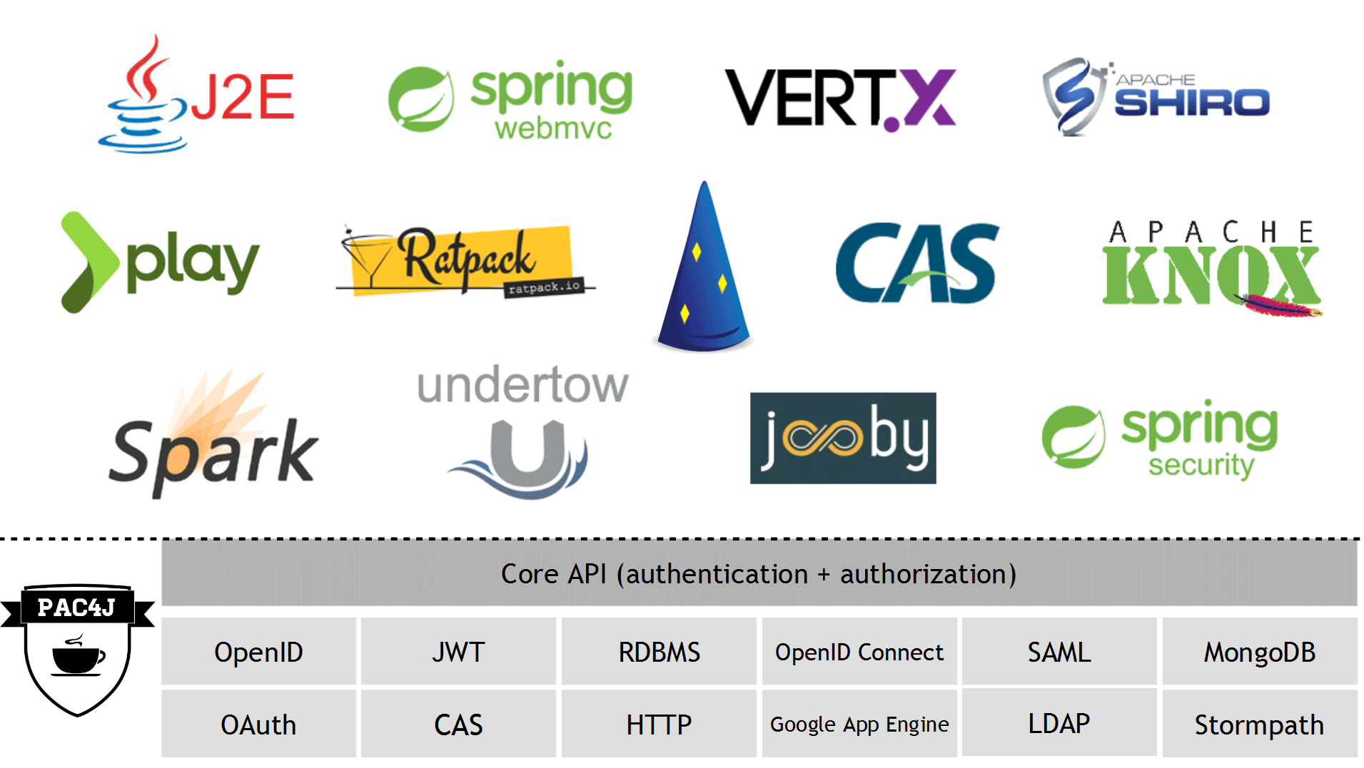 | j2e-pac4j 1.0.2 | OAuth / CAS / OpenID / HTTP / SAML | pac4j 1.5.0 | j2e-pac4j-demo |
