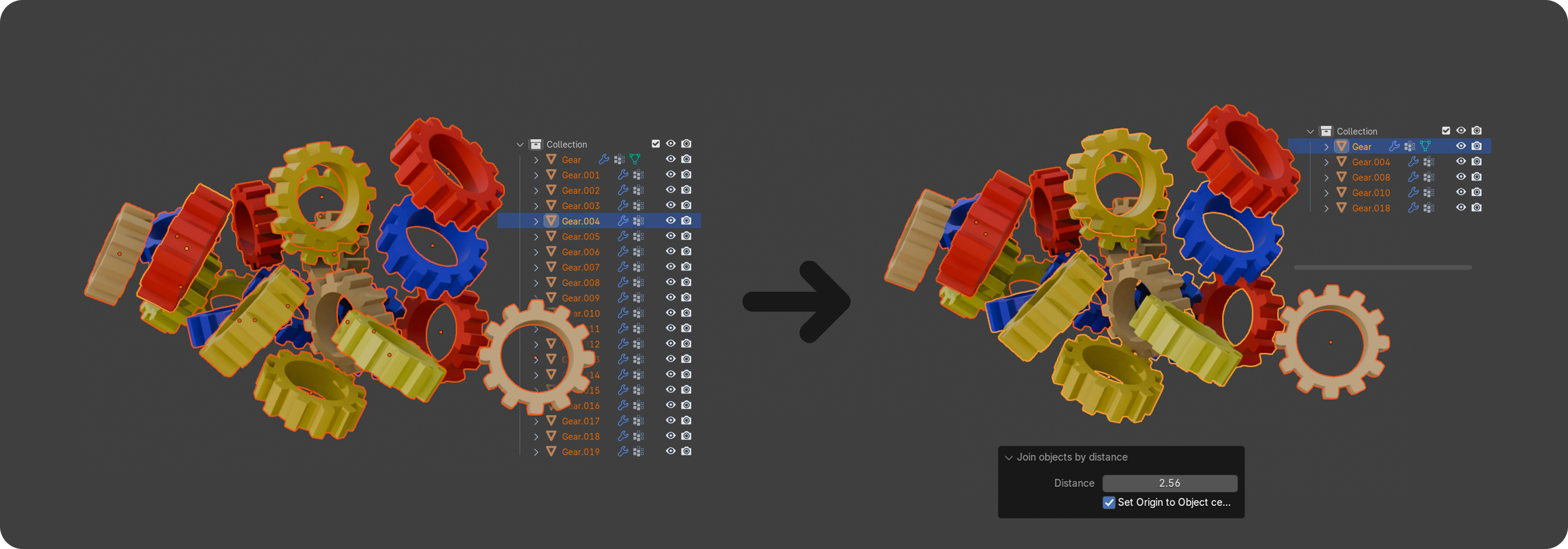 - Set the desired minimum Distance to define how close objects need to be to join.