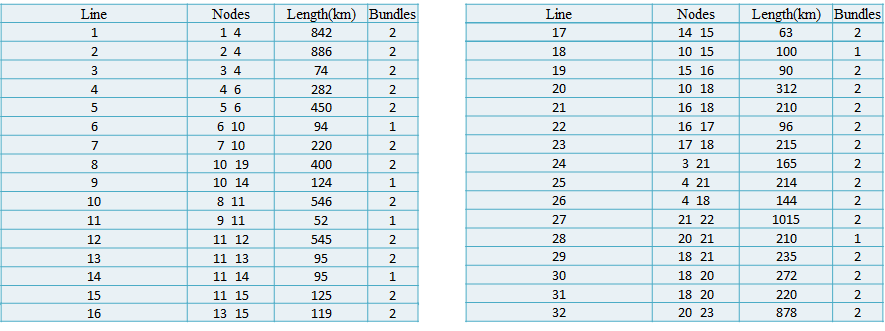This table determines lengths and types of each electric powwr transmission line between nodes (cities):