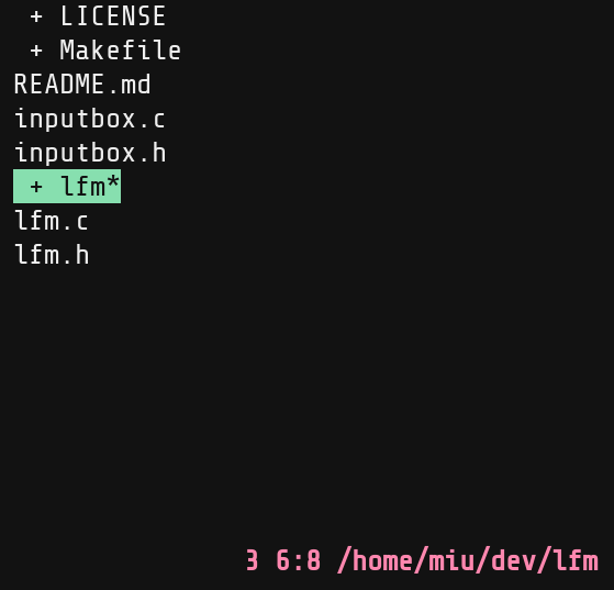 lfm Tiny ncurses file manager that i made for fun. It is not a serious project. Installation Compile with: # Colors are on by default make install # Use this to disable colors make install USECOLOR= Screenshot