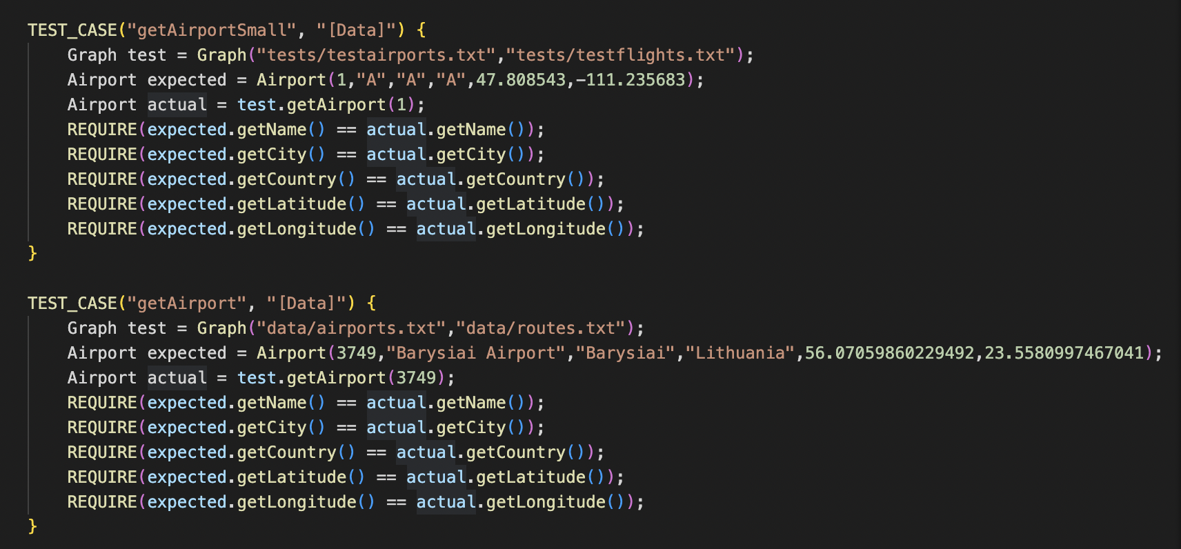The test case for this includes comparing the expected vector with the given vector of coordinates.