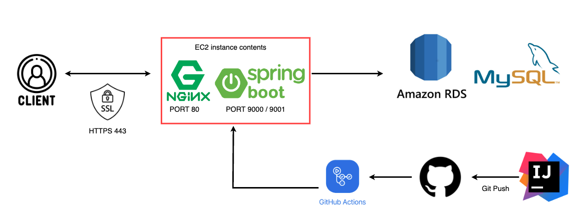 | Infra | AWS(EC2, RDS), Nginx, GitHub Action |